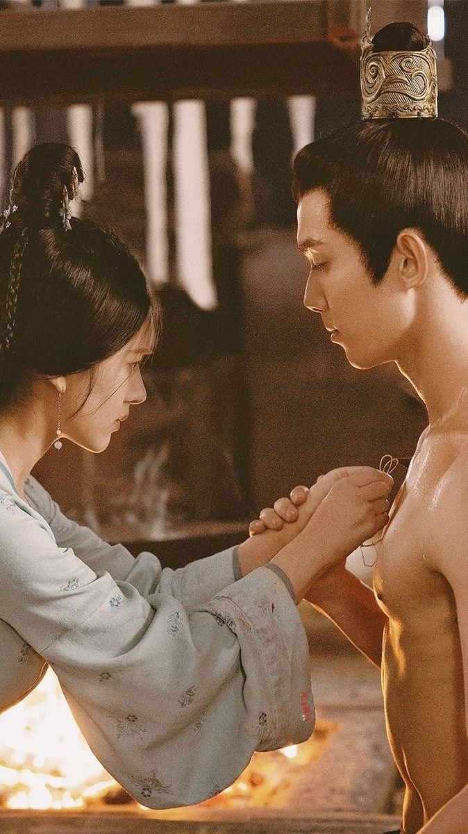 1. 묘묘가 릉불의의 가슴에 박힌 화살을 뽑아주는 장면